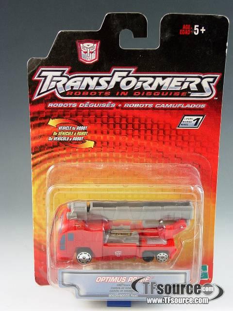 Transformers Robots in Disguise Optimus Prime is Basic Class class and transforms from Fire Truck to robot and back.