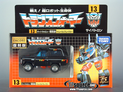 13 Trailbreaker is part of Takara Tomy's Transformers Encore series which features reissues of original Transformers G1 Generation one toys made back in the 80's. These reissues of the original robots in disguise feature the original toys in retro Japanese G1 style Takara Transformers packaging.