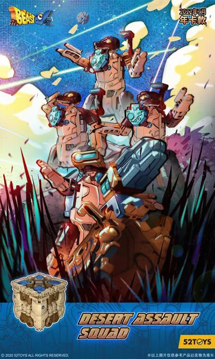 BeastBOX is an originally designed series of robotic-style creatures that transform into little cubes. The BB-48 Desert Assault Squad is a set of four robotic creatures which can combine to make a single BeastBOX cube.