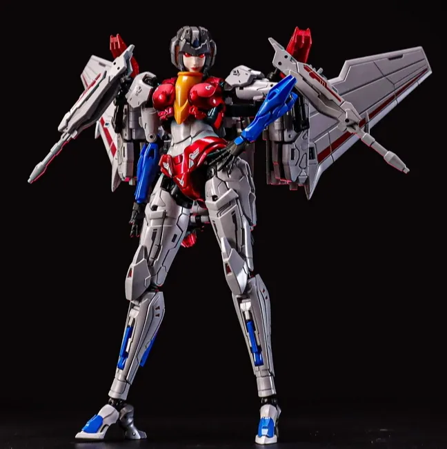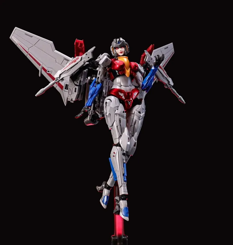 Expand your action figure collection with the CS-03 Starqueen figure by Collection Space. This figure is just over 7 inches tall and comes with additional parts and accessories to customize your figure. The figure is able to convert from a humanoid mode into fighter jet mode.
