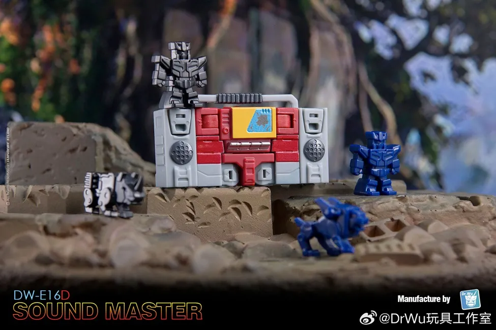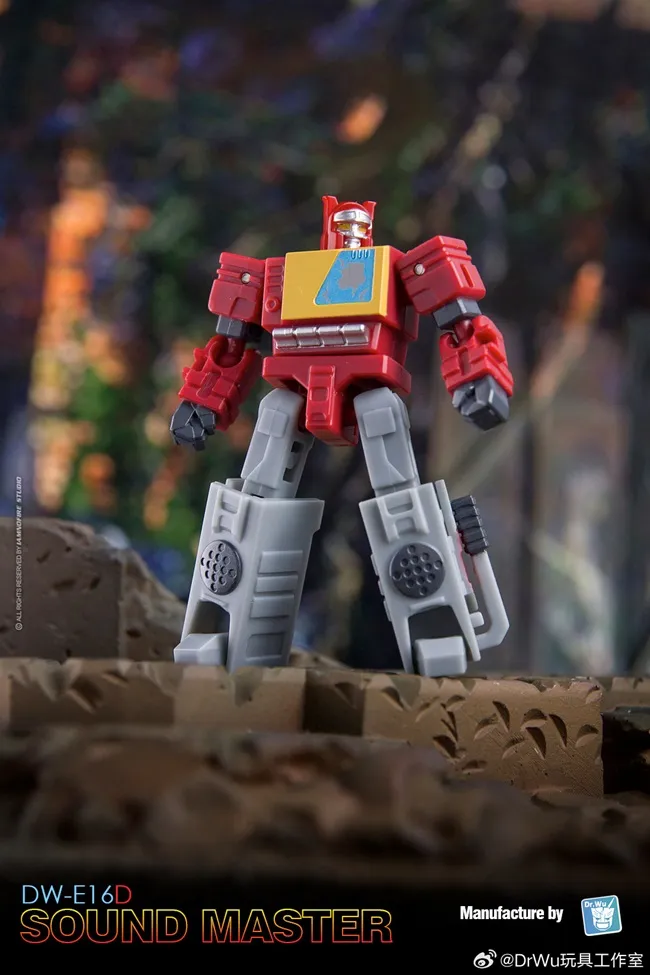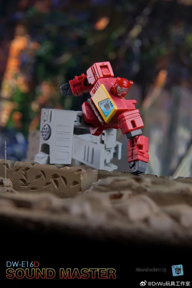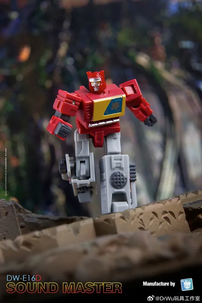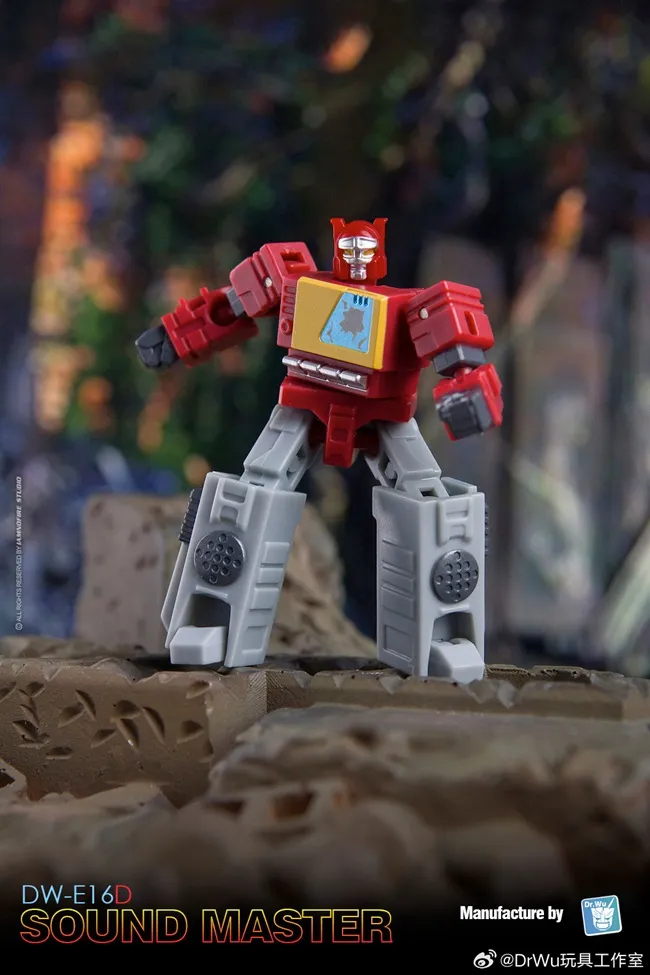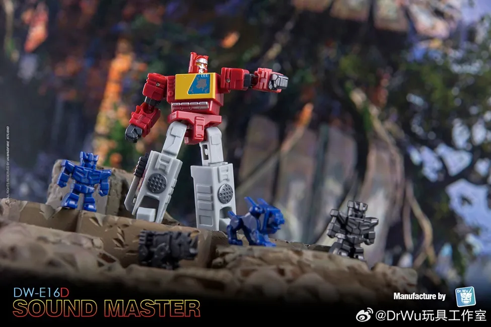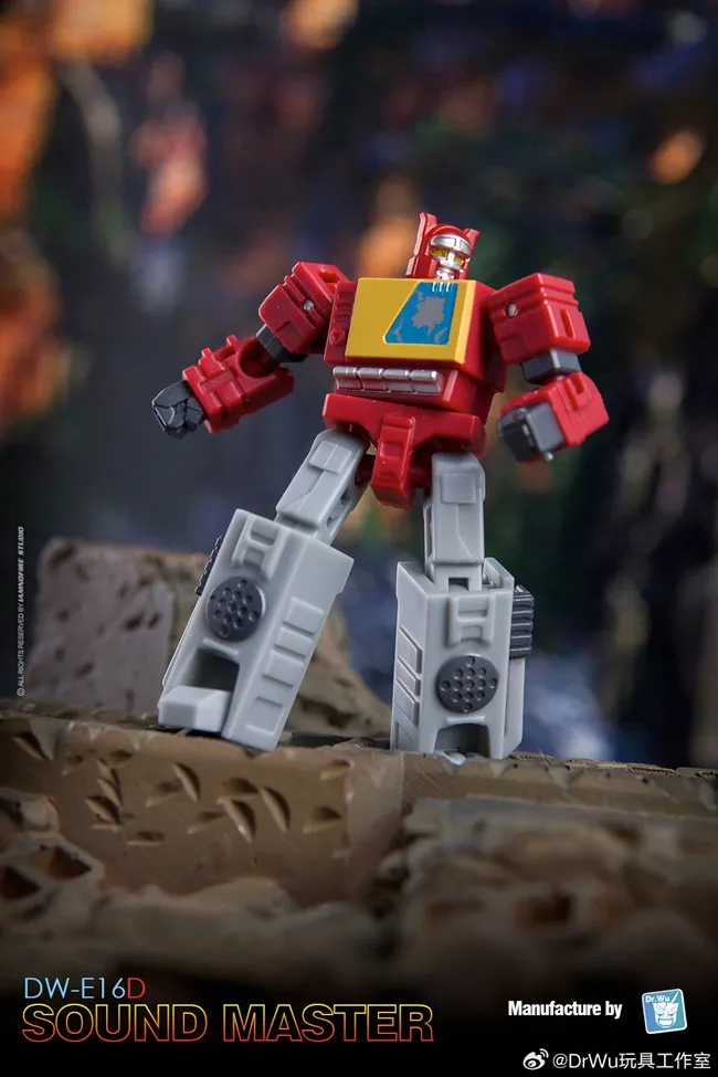 The DW-E16D Sound Master figure stands 2.4 inches tall in robot mode and can transform into a cassette player alt mode.