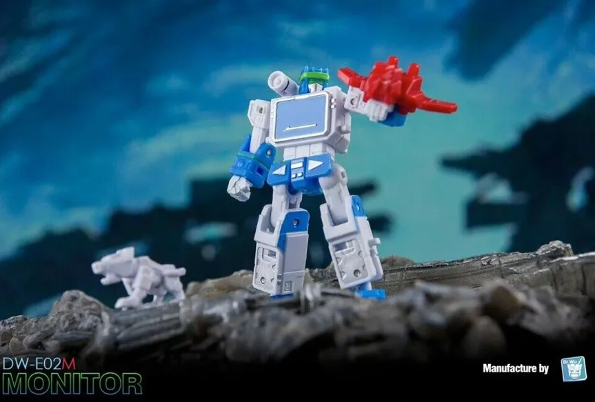 The DW-E02M Monitor figure stands 2.4 inches tall in robot mode and can transform into a cassette player alt mode.