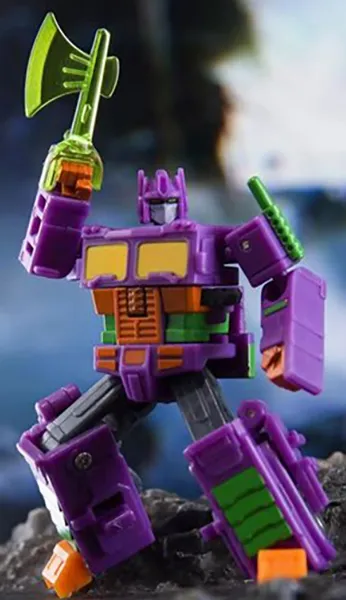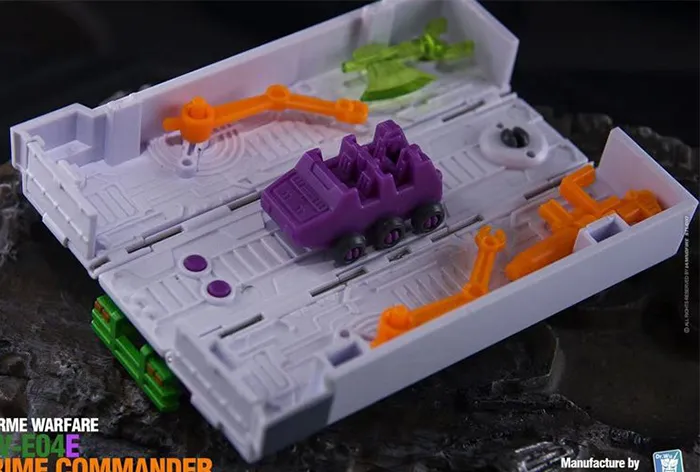 The DW-E04E Prime Commander stands 2.36 inches tall and transforms from robot mode into a semi-truck with trailer alt mode. The semi-truck trailer opens up to include a repair bay.