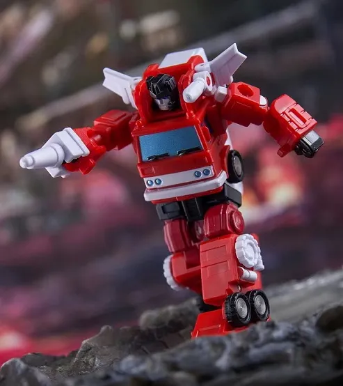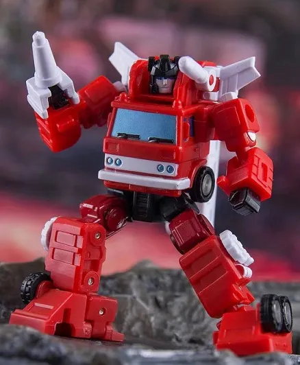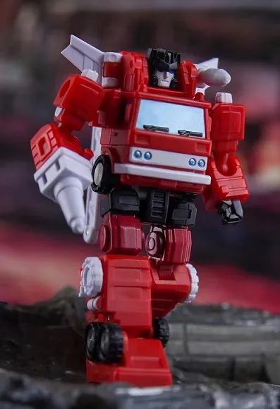 The DW-E24 Firefighters stands 2.2 inches tall and transforms from robot mode into a fire truck alt mode.
