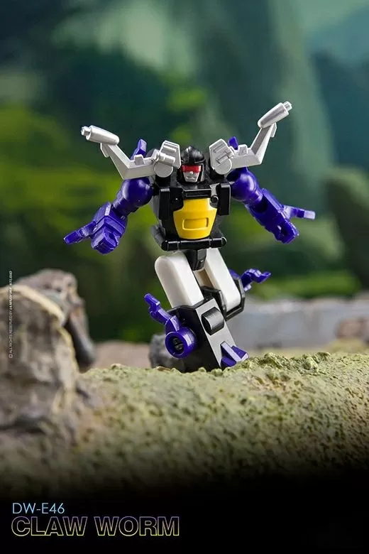 From Dr. Wu comes their newest set of converting figures, DW-E45 Silver Lightning and DW-E46 Claw Worm! These figures stand between 1.5 to 2.4 inches tall in robot mode. DW-E45 Silver Lightning converts into a car, while DW-E46 Claw Worm can convert into an insect.