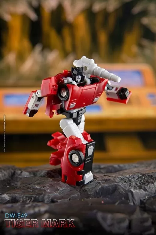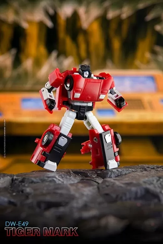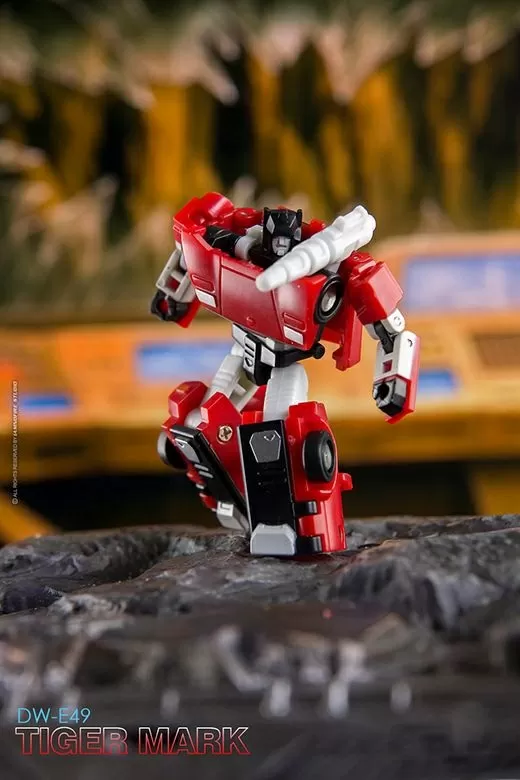 From Dr. Wu comes their newest set of converting figures, DW-E49 Tiger Mark and DW-E50 Plunder! These figures stand between 1.5 to 2.4 inches tall in robot mode. DW-E49 Tiger Mark converts into a sports car, while DW-E50 Plunder can convert into an insect form.