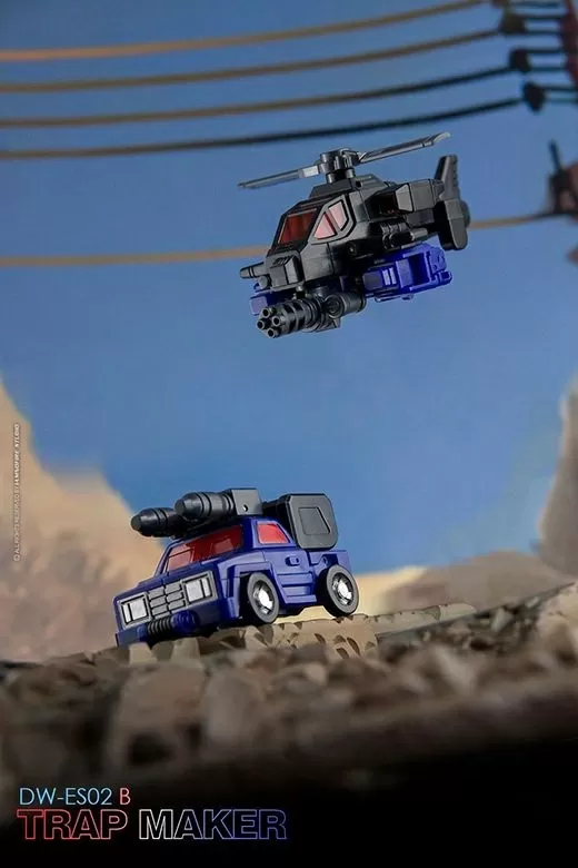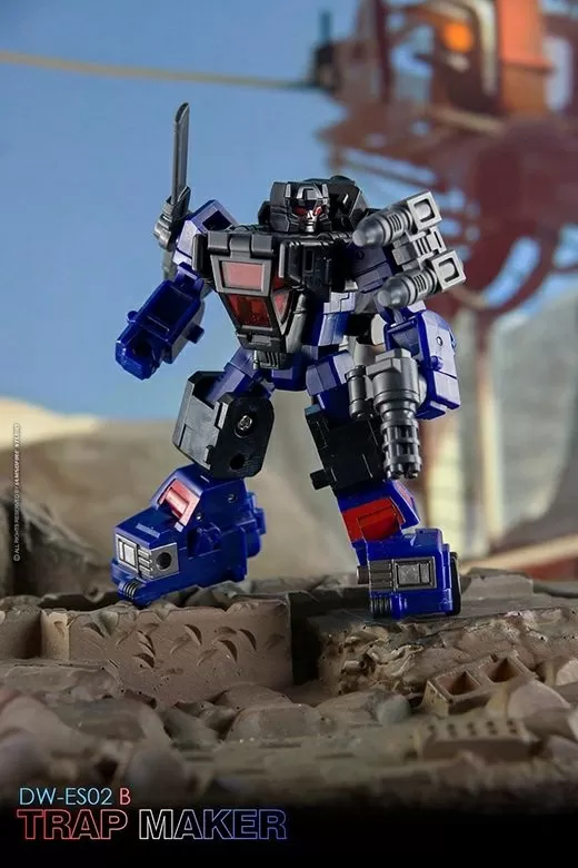 From Dr. Wu comes the newest converting figure, the DW-ES02B Trap Maker! This figure stands about 4 inches tall in robot mode and can convert into a helicopter or truck.