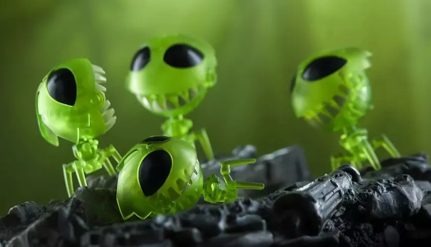 DW-TP10T Iron Eater Set of 4 Transparent Version figures stand approximately 2.0 inches tall, and are made up of a green transparent plastic.