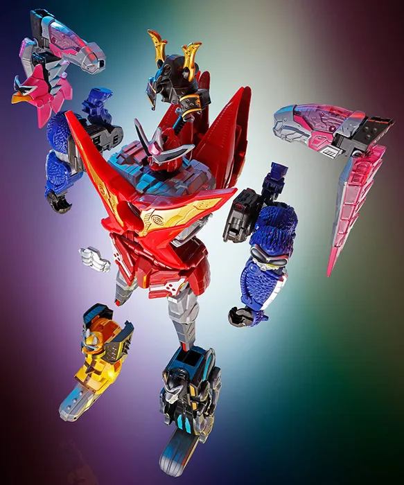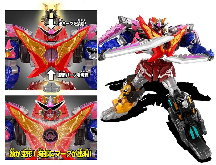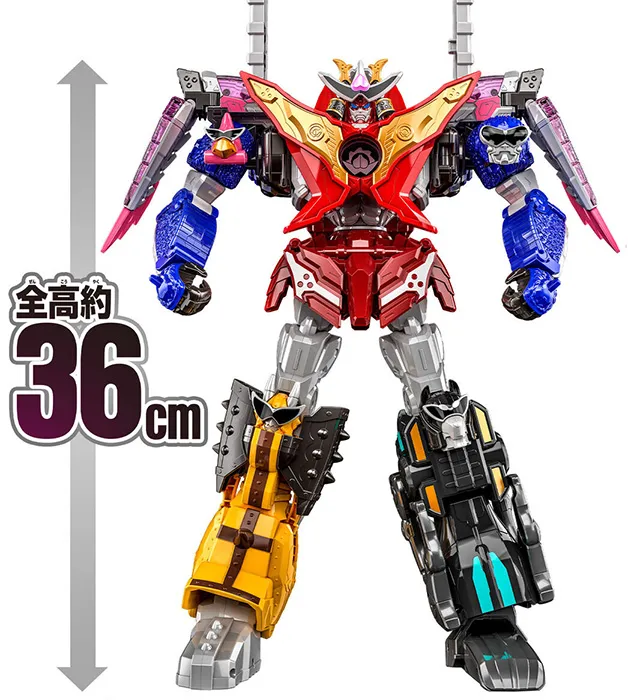 The DonBrothers access their new RoboTaro forms and combine into the great warrior Don Onitaijin! This Mecha is formed by Don Momotaro becoming the head & torso, SaruBrother forming the arms, InuBrother & OniSister becoming legs and finally KijiBrother turning into wings.