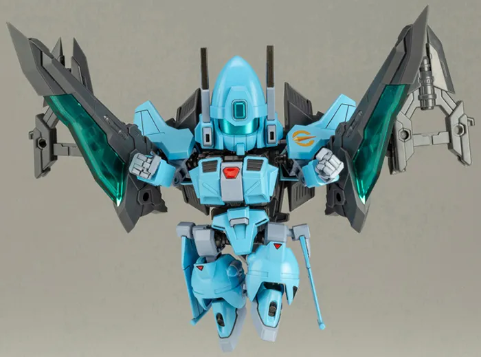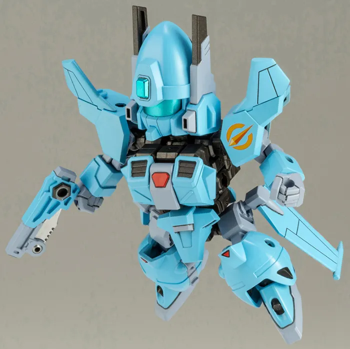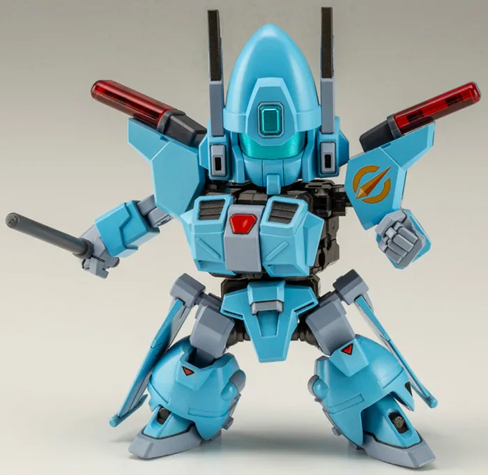 The latest addition to this series of plastic model kits featuring cool and cute chibi robots by mechanical designer Kunio Okawara has arrived! The instructions for this series include a comic drawn by KÅichi Tokita. This mass-produced “”M-JET-N”” equipped with new-style face parts and highly stable main wings transforms from a chibi robot to a fighter jet with no interchangeable parts required.