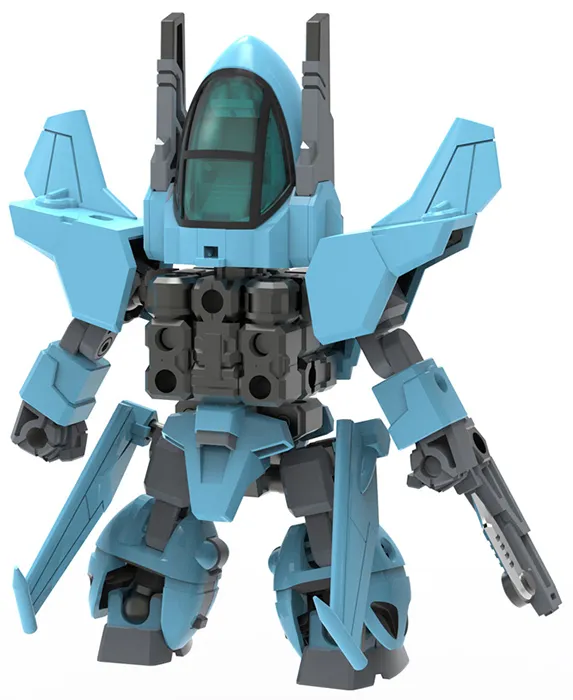 Evoroids EVR-M01 M-Jet-N Model Kit can transform from a chibi robot to a fighter jet!