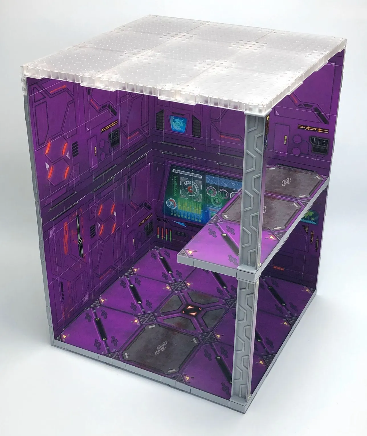These panels and plates can be constructed to create a display unit perfect for figures and collectibles.