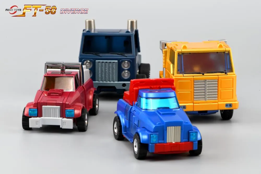 FT-58 Diverge takes your collection to the next level with this Masterpiece scaled, highly articulated 3rd Party transformable figure. This figure transforms from a truck to robot and back. FT-58 Diverge is Masterpiece scaled and will scale to other Takara Tomy Transformers Masterpiece series figures, 3rd Party Masterpiece scaled as well as other Fans Toys items already in your collection.