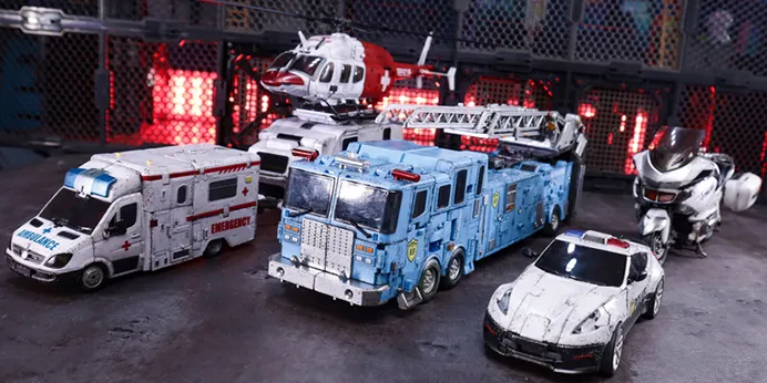 GT-08 Guardian Combiner Set of 5 Battle Dam Version can convert from robot to vehicles!