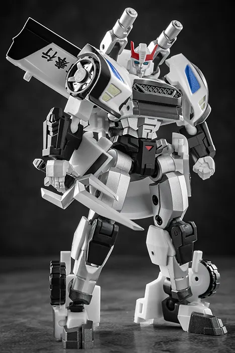 Iron Factory's IF-EX-63 Oniheizou is made of durable plastic and features a high level of articulation and is highly posable. The figure is built to a high standard and meticulously precision engineered to the Iron Factory standards. IF-EX-63 Oniheizou is a legends scale figure standing 3.5-inches tall in his robot mode and can quickly transform between a Police Car and his robot form.