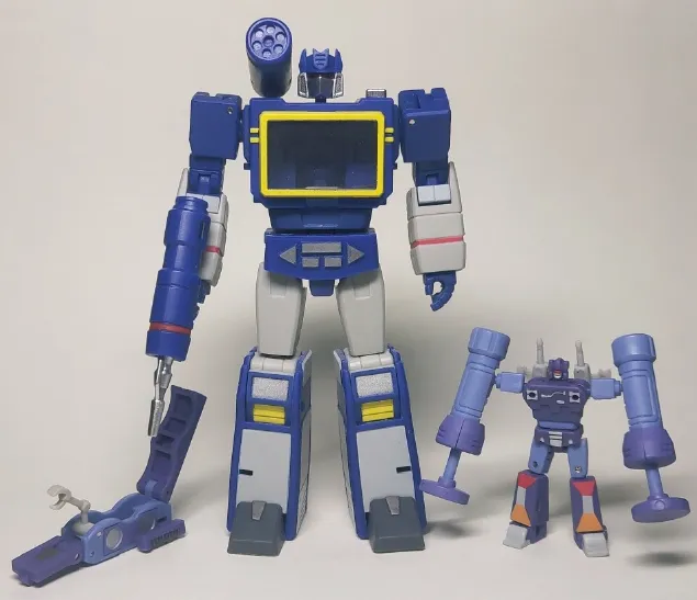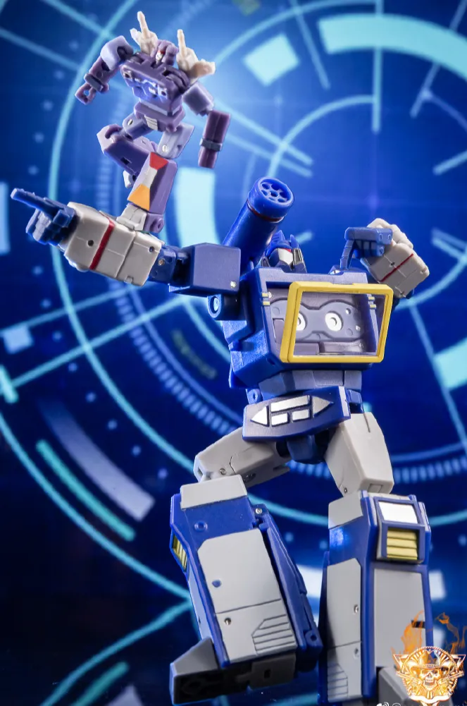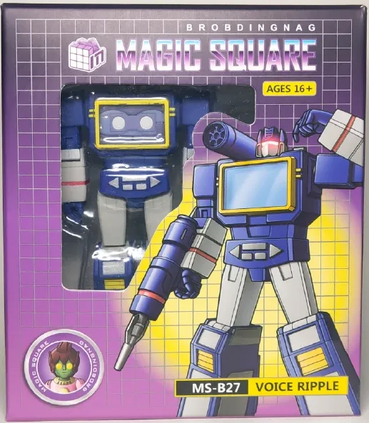Magic Square's 3rd Party Figures take your collection to the next level with MS-B27 Voice Ripple , a Legends scaled 3rd party figure that transforms from a Cassette Player to robot and back. Magic Square's MS-B27 Voice Ripple stands 4.7 inches tall in robot mode and scales to other figures from Magic Square and to other Legends scaled figures already in your collection.