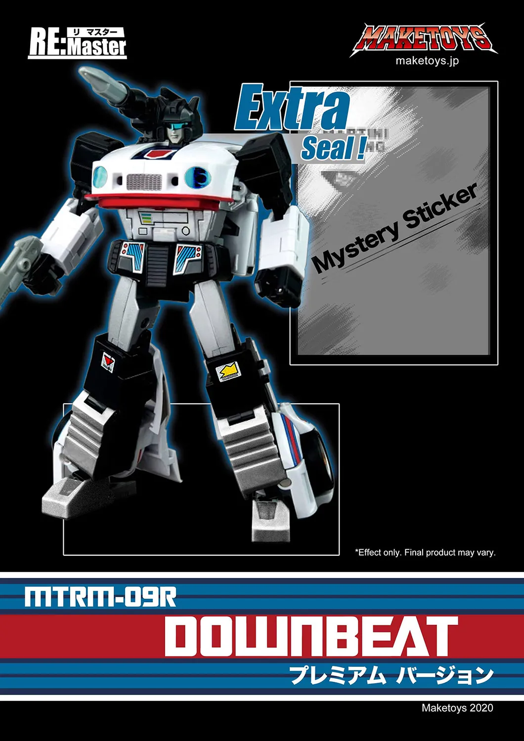 MTRM-09R Downbeat Premium Version by MAKETOYS is from their RE:Mastered line and is an improved version of the original Downbeat release.  This limited edition re-release of Downbeat features all new more accurate paint details, metallic paint applications, and exclusive racing stickers only available with this set.   Additional gimmicks and mystery details of this product are to be revealed. This Premium Version of Downbeat is a highly lmited edition release in an all new premium format of figures by Maketoys.