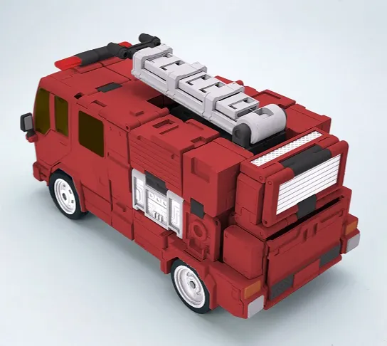 MB-14 Kap figure is part of Fans Hobby's Master Builder series which all figures in this series are Masterpiece scale and this figure stands 7.3 inches tall in robot mode. MB-14 Kap's alternate mode is a fire truck which also includes a blaster weapon and mini transforming figure.