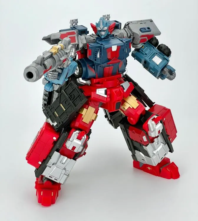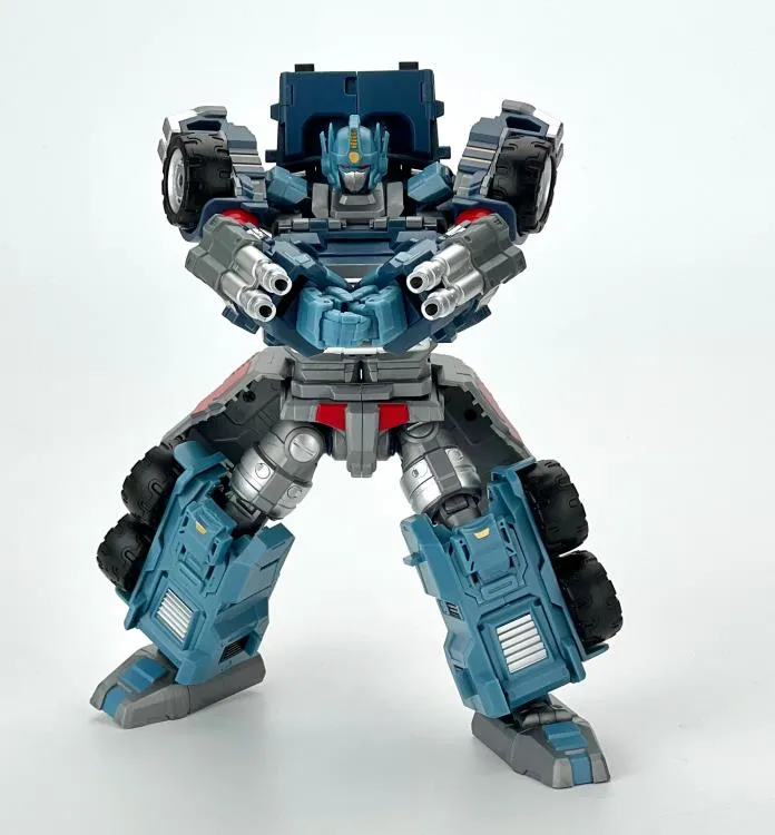 MB-15A Power Commander figure is part of Fans Hobby's Master Builder series which all figures in this series are Masterpiece scale and this figure stands 12.60 inches tall in robot mode. MB-15A Power Commander's alternate mode is a Semi Truck and Trailer with a full arsenal of weapons and accessories.