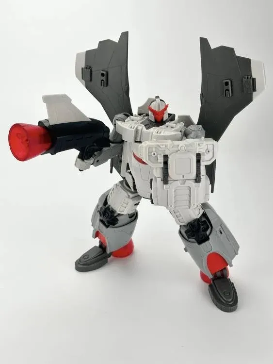 This robot figure converts from robot mode to rocket ship mode and back again. It can also convert into an attack base!