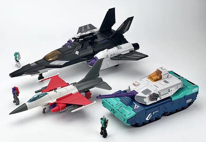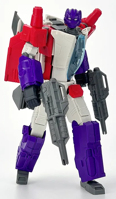 From Fans Hobby comes the Master Builder MB-23 Destroyer converting robot. This robot features a red, white and purple color scheme and can convert into a jet plane. This highly detailed Destroyer figure is a terrific addition to any collection.