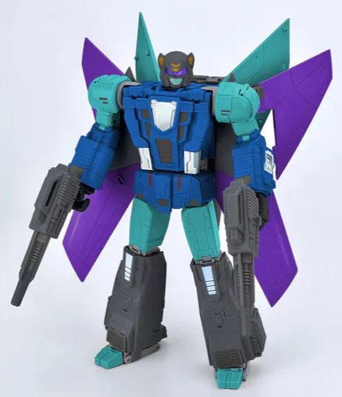 From Fans Hobby comes the Master Builder MB-24A Dark Strike converting robot. This robot features a green, blue, purple, and gray color scheme and can convert into a jet. This highly detailed Dark Strike figure will be a terrific addition to any collection.