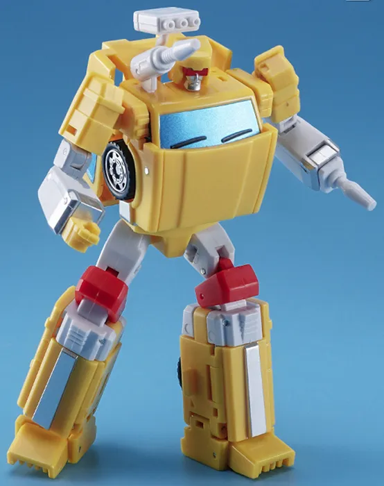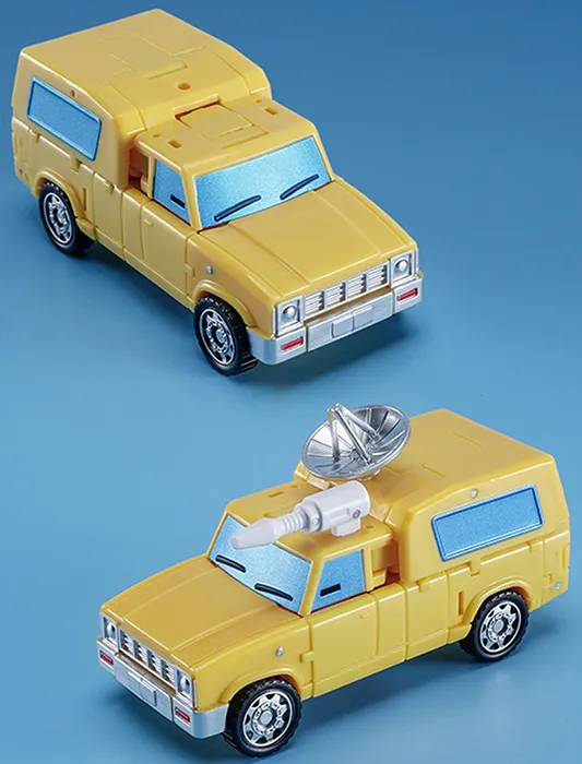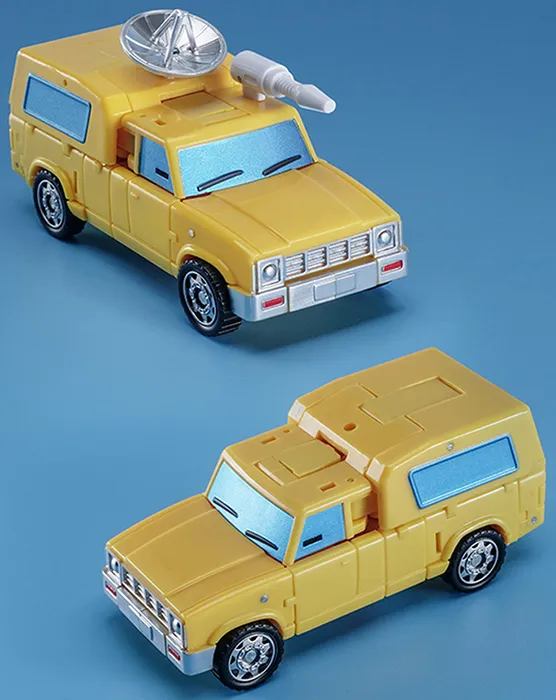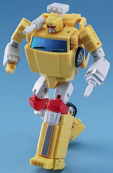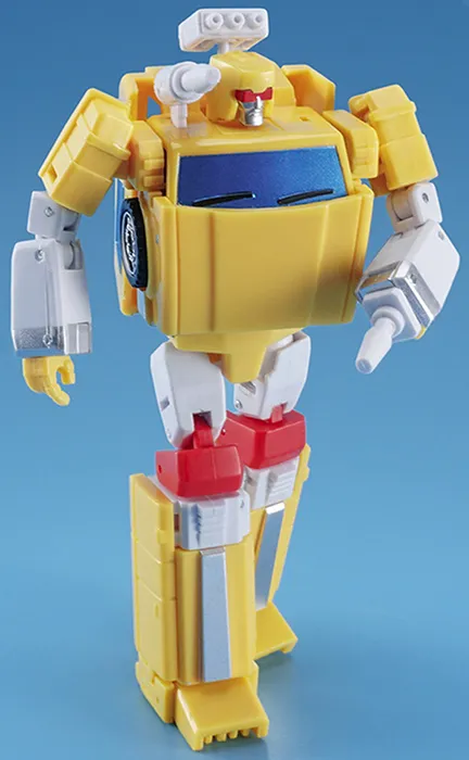 This 4-inch figure converts from robot to car mode and includes two weapon accessories for the battles ahead. This is the yellow-colored version.