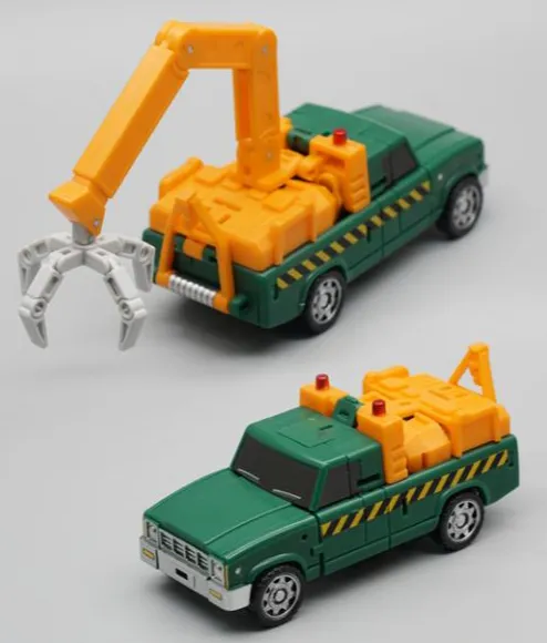 From Mech Fans Toys, the MF-53 Trailer figure stands a little over 4 inches tall, legends scaled, and can transform from robot to truck with a crane and back.