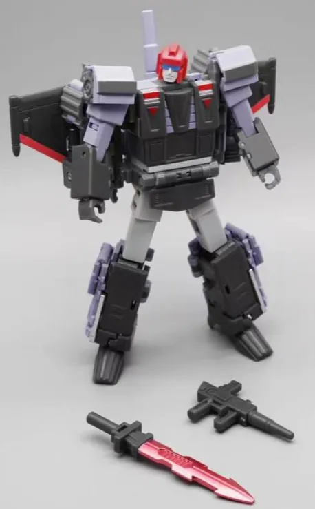 MS-28A Triple Changer stands approximately 4 inches tall in robot mode, and includes a blaster rifle and sword.