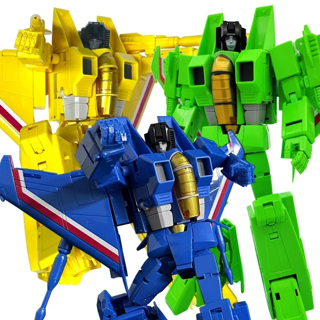 Make Toy's figures take your collection to the next level with MTRC-03 Gangreen, MTRC-05 Col Mustard, MTRC-07 Fruit Punch Set of 3 TFCon Exclusive, a Masterpiece Scale-scaled 3rd party figure that transforms from Fighter Jet to robot and back.