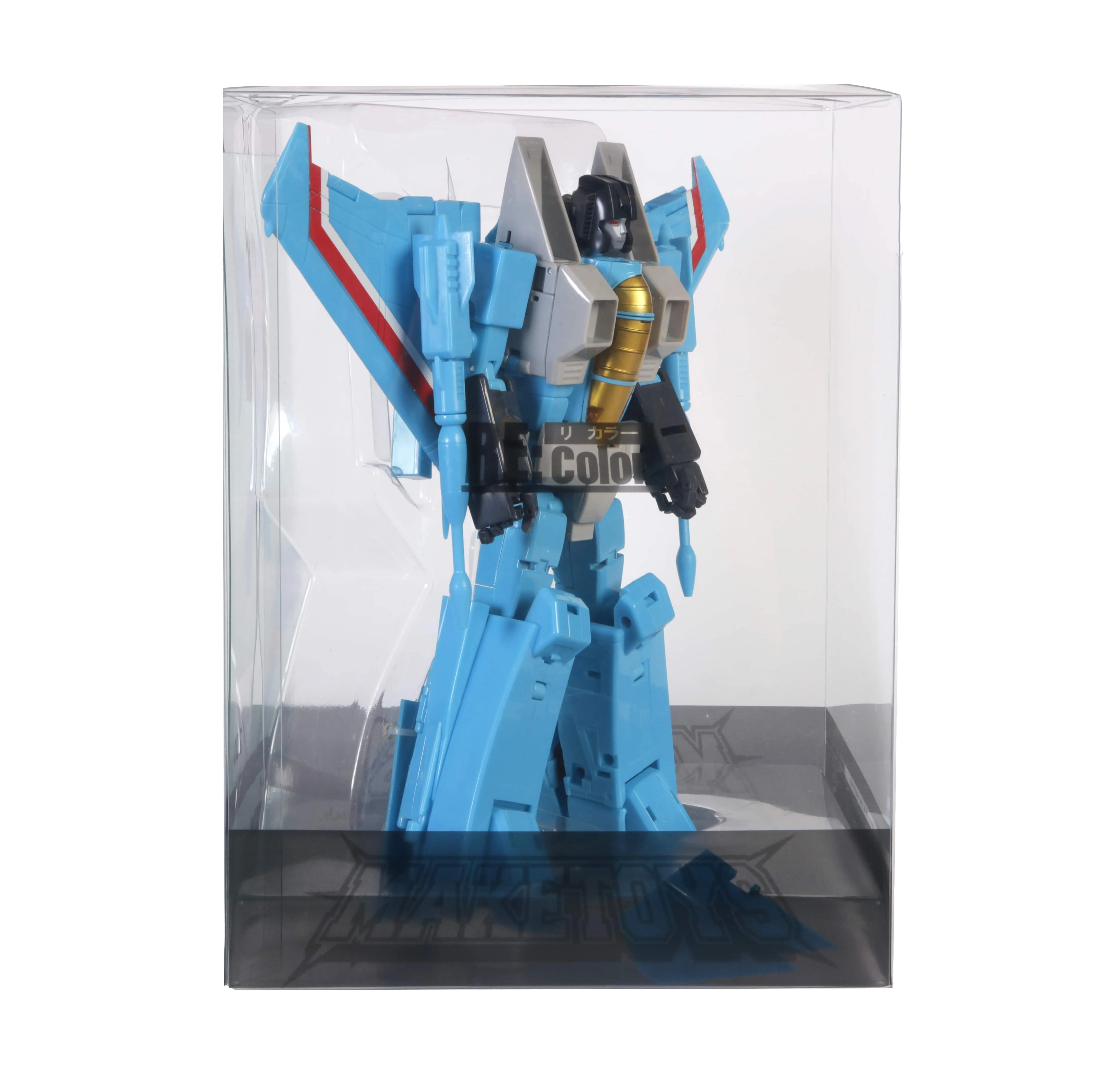Make Toy's figures take your collection to the next level with MTRC-04 Sky Guy Exclusive, a Masterpiece Scale-scaled 3rd party figure that transforms from Fighter Jet to robot and back.