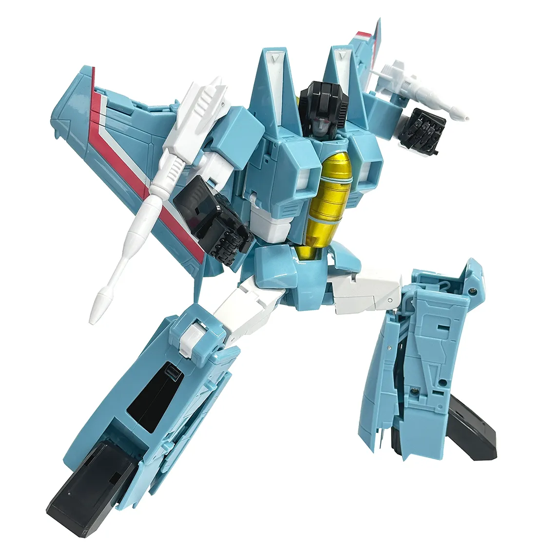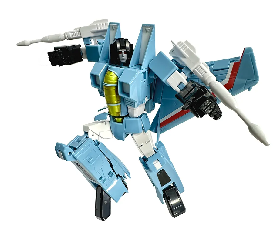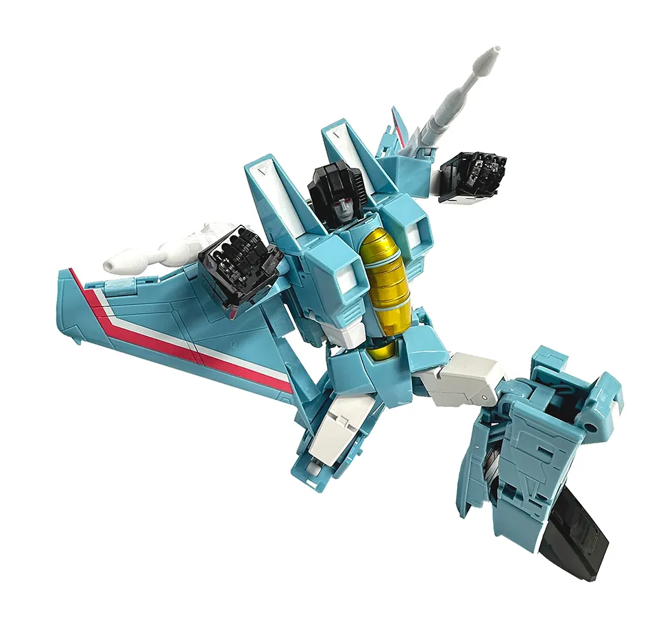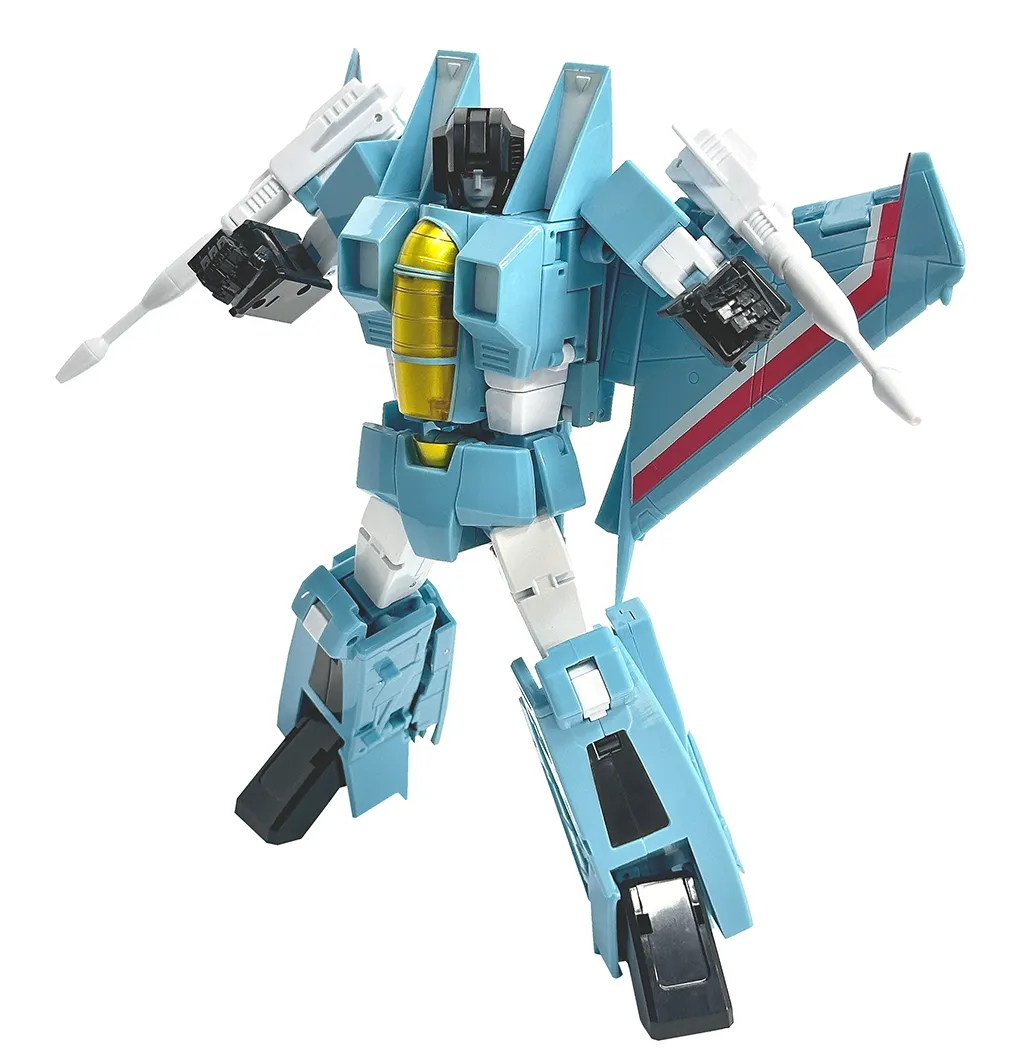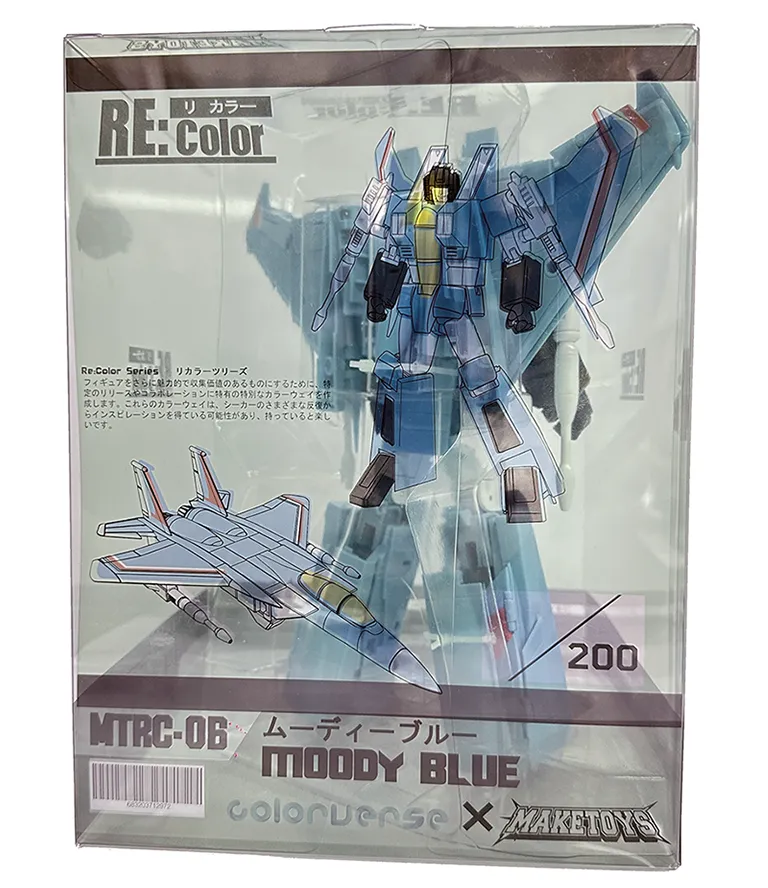 Make Toy's figures take your collection to the next level with MTRC-06 Moody Blue TFCon Toronto Exclusive, a Masterpiece Scale-scaled 3rd party figure that transforms from Fighter Jet to robot and back.