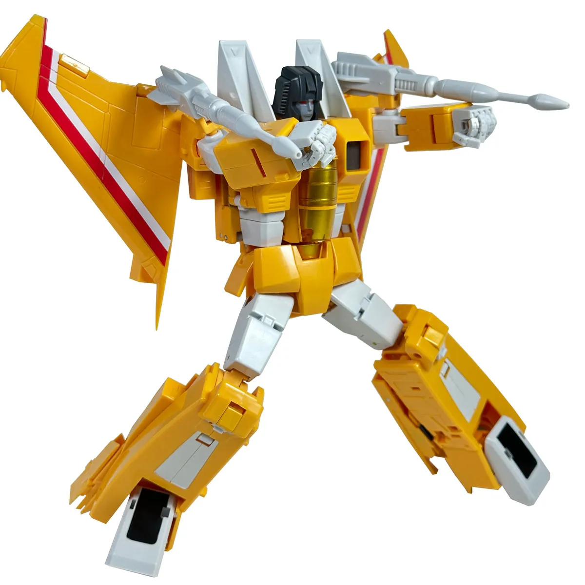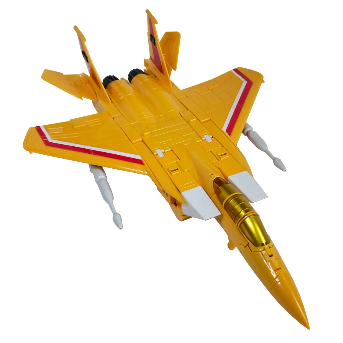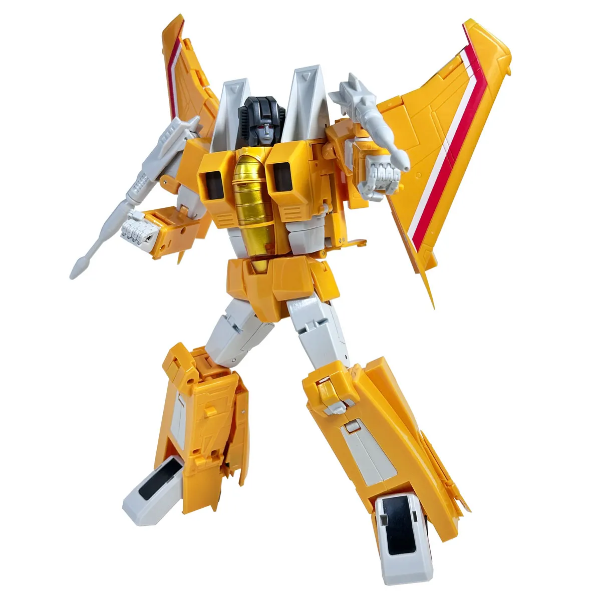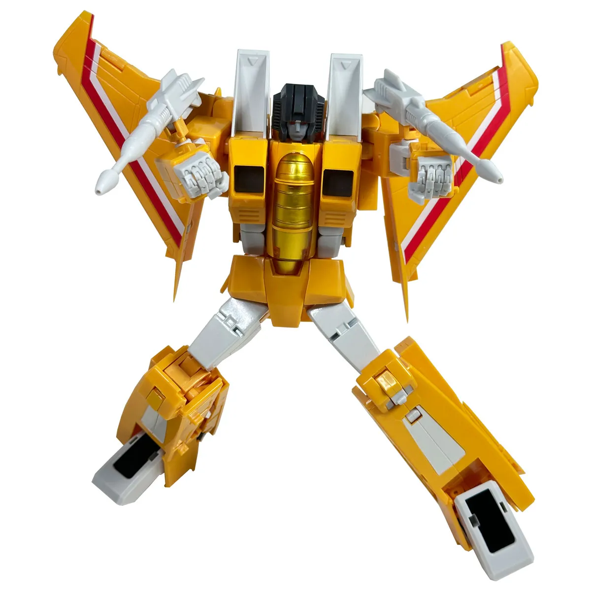 Make Toy's figures take your collection to the next level with MTRC-10 Golden Hour Christmas Exclusive, a Masterpiece Scale-scaled 3rd party figure that transforms from Fighter Jet to robot and back.