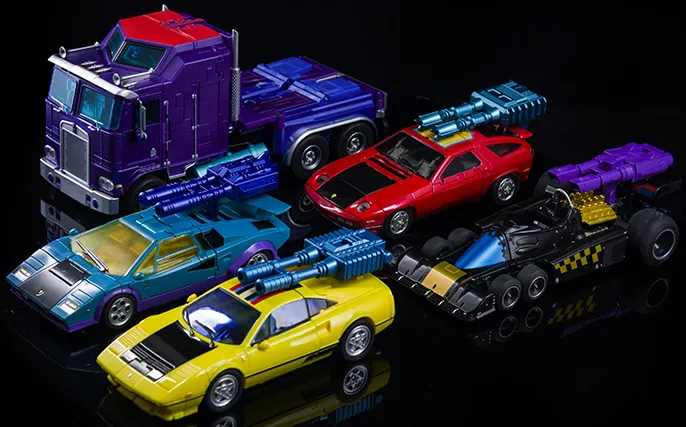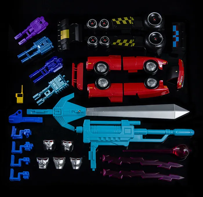 X-transbots figure lines feature modern manufacturing process that makes their figures affordable while maintaining high quality and solid construction. Built from a combination of ABS plastic, nylon and rubber for the tires, most figures also contain some type of diecast parts and feature clear windows for their alternate modes. Updated G1 color schemes and great articulation/ratcheting of joints make these figures visually spectacular.