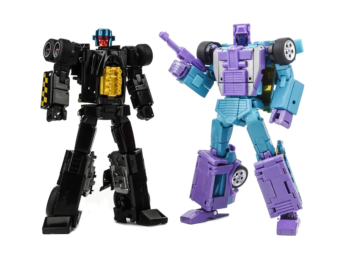 X-transbots figure lines feature modern manufacturing process that makes their figures affordable while maintaining high quality and solid construction. Built from a combination of ABS plastic, nylon and rubber for the tires, most figures also contain some type of diecast parts and feature clear windows for their alternate modes. Updated G1 color schemes and great articulation/ratcheting of joints make these figures visually spectacular.