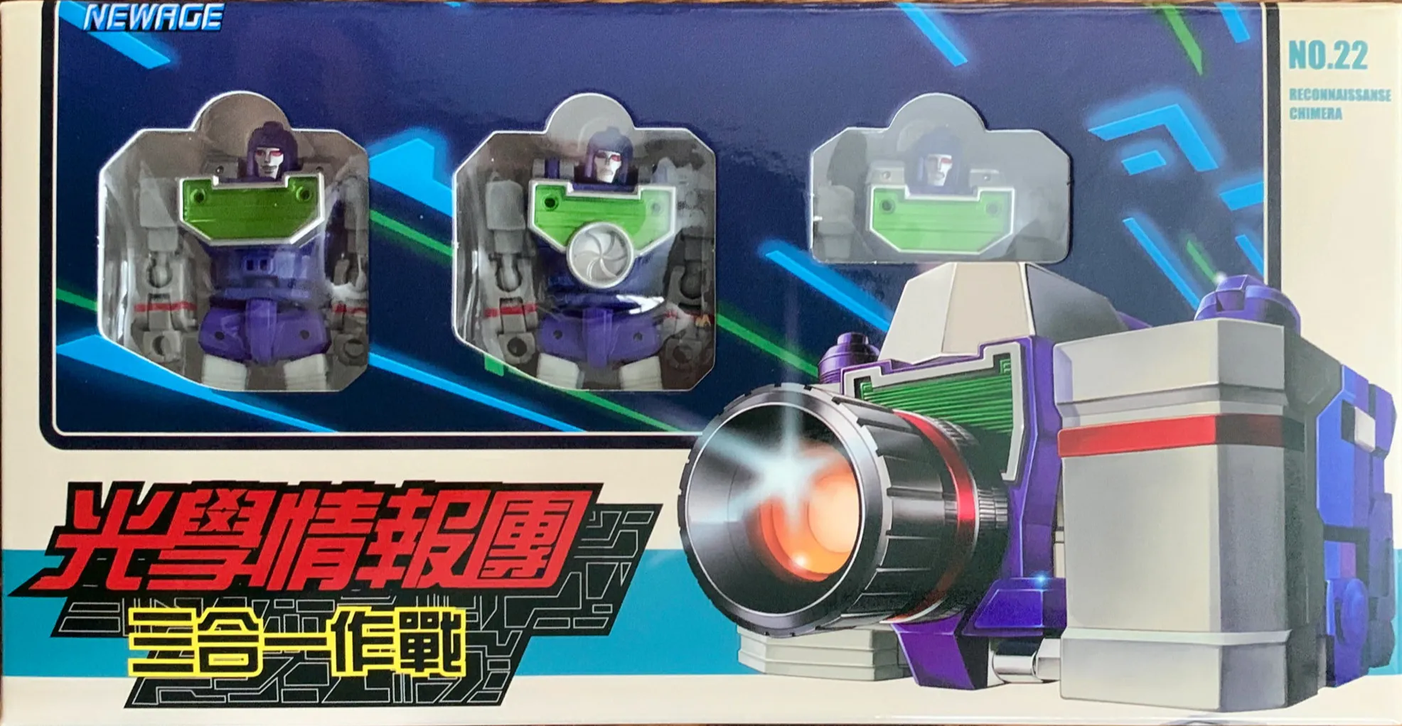 Newage's 3rd Party Figures take your collection to the next level with H22 Chimera, part of Newage's the Legendary Heroes line is a Legends scaled 3rd party figure that transforms from a Camera to robot and back. Newage H22 Chimera stands 3.0 inches tall in robot mode and scales to other figures from Newage and to other Legends scaled figures.