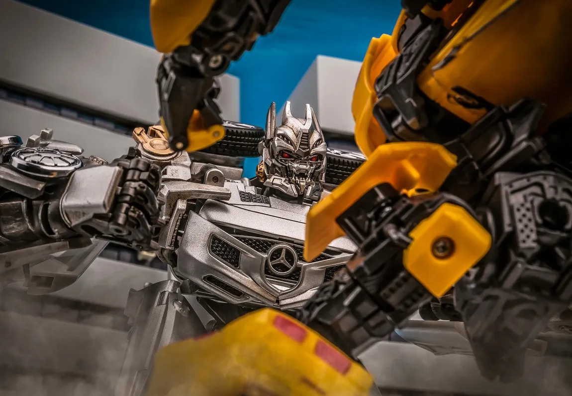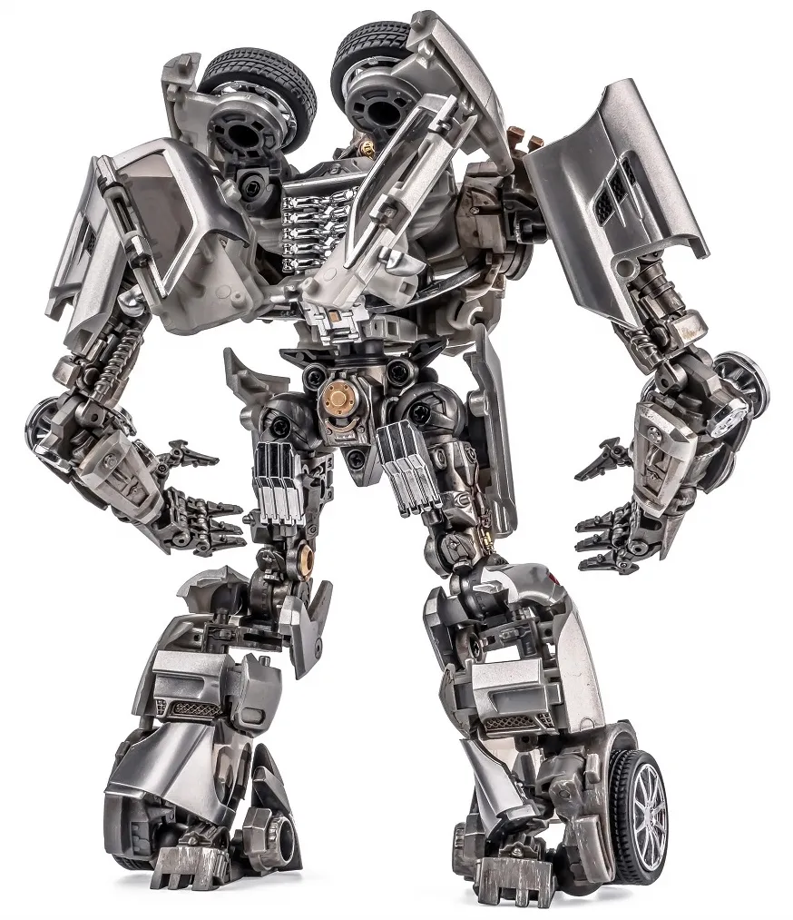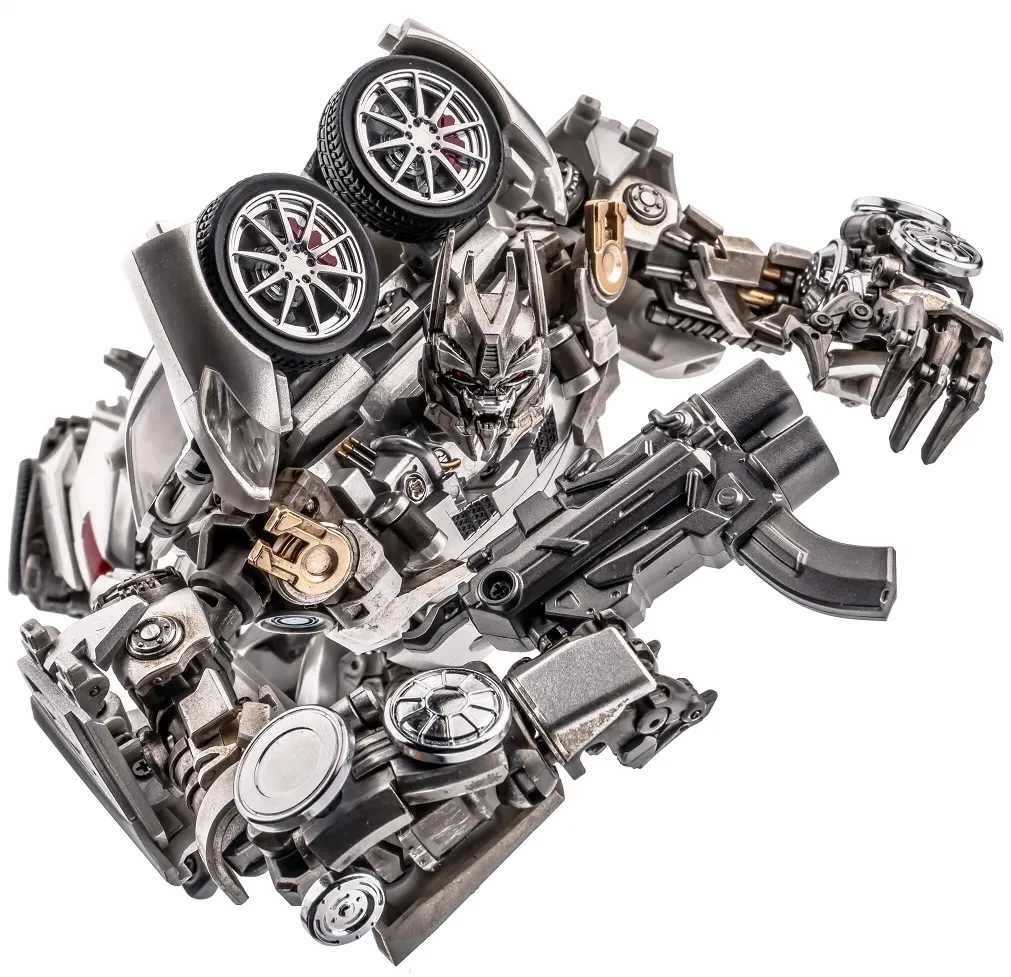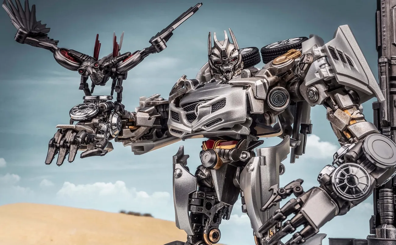 It's created to be a high-quality toy that fully conforms to the image in the movie. The height of the robot is 6.6-inches, which is matched with the MPM03. The tires of the model are rubber parts, and the flaps can be opened. The window is transparent, the whole body is painted with metal, the human figure contains alloy parts, and the hands can be used. The weapon is equipped with double guns. It is equipped with an ultra-movable robot bird.