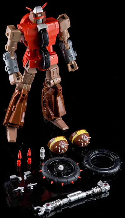 P-6I Smithereen Limited Edition by KFC Toys is a Masterpiece Scale scaled 3rd party figure that transforms from a Motorcycle to robot and back. P-6I Smithereen Limited Edition figure stands 7.9 inches tall in robot mode and scales to other figures from KFC Toys and to other Masterpiece Scale scaled figures already in your collection.