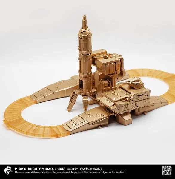 Pangu Toy's 3rd Party Figures take your collection to the next level with PT-02G Mighty Miracle God Gold Version, a Legends Class scaled 3rd party figure that transforms from a Rocket Base to robot and back.