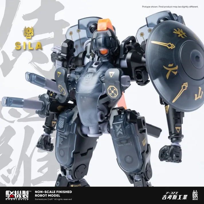 The newest robot, RB-09D Sila is being added to Wave's Robot Build series. It boasts a strong samurai motif with an energetic orange that pops next to the dark translucent parts.