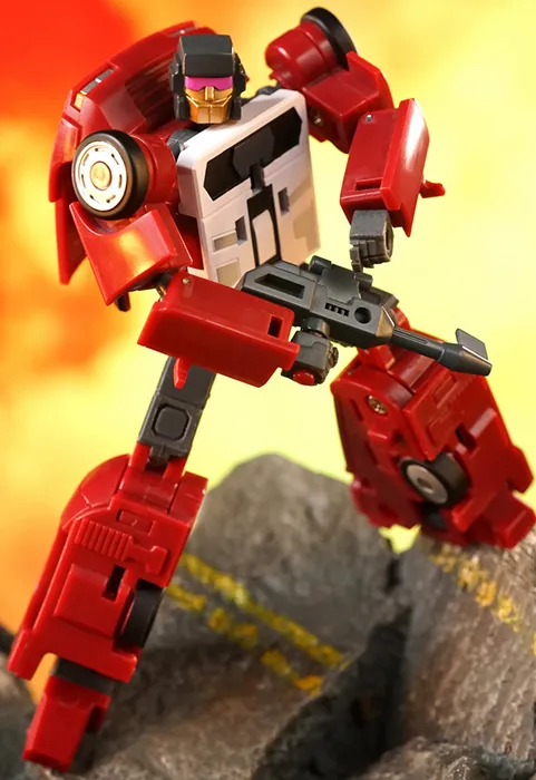 From Rising Force, RF-L01 Deadend/Catfish stands at 9.1 inches tall and can transform from a robot into a car. It also comes armed with a blaster.