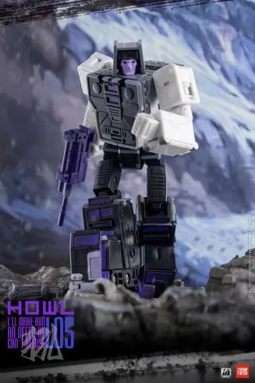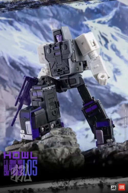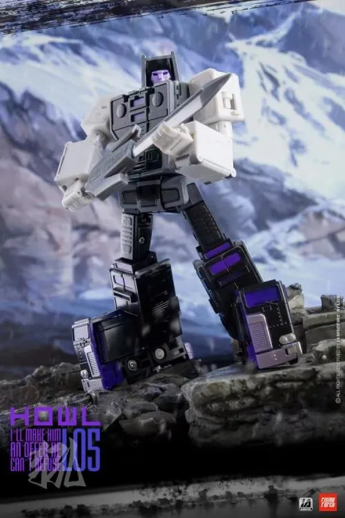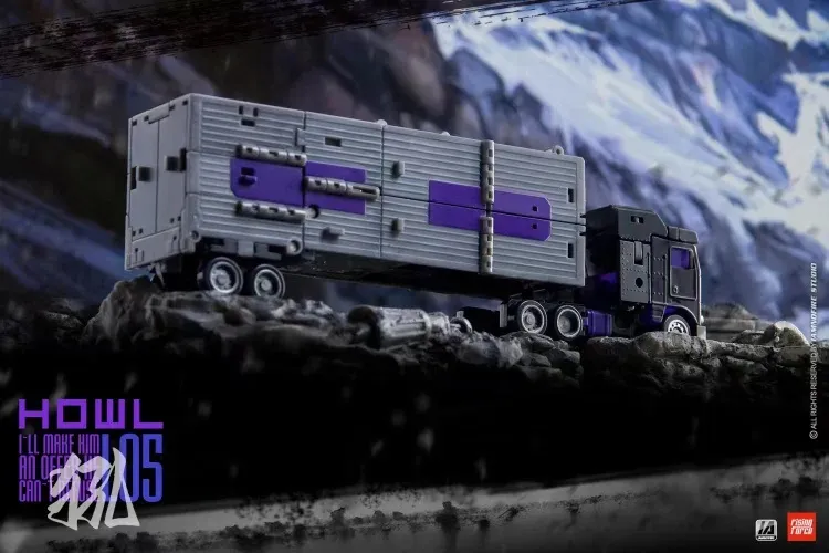 L05 Howl converts from a robot into a semi-trailer truck. The figure is over 5 inches tall when in robot mode and around 6.7 inches long in vehicle mode.