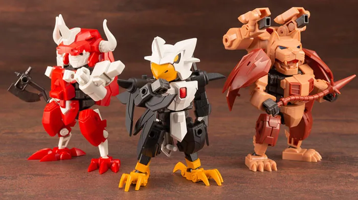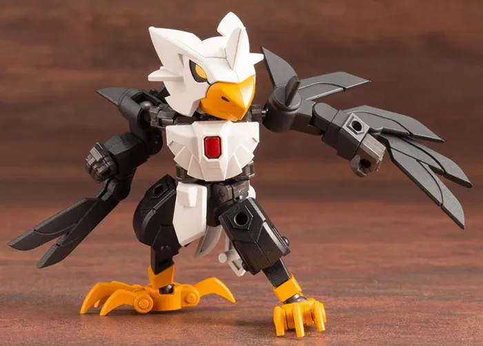 A new series of plastic model kits featuring cool and cute chibi robots by mechanical designer Kunio Okawara has arrived! The instructions for this series include a comic drawn by KÅichi Tokita. This cool and quiet flying warrior of the Evobeasts, SKY-EAGLE, is an Evobeast that transforms from a chibi robot to a bald eagle with no interchangeable parts required. Combine the parts with other models to power up your Evobeasts!