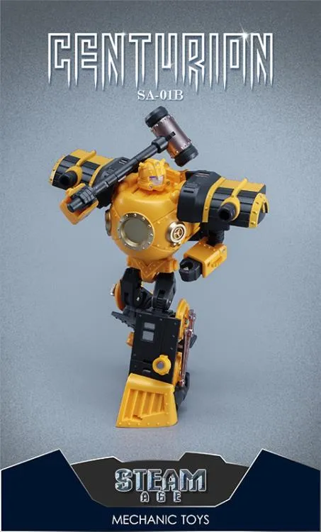 Mechanic Toys presents Steam Age SA-01B Centurion, a steampunk style articulated figure that can transform from robot mode to train mode. SA-01B Centurion features a piece of train tracks and a hammer.