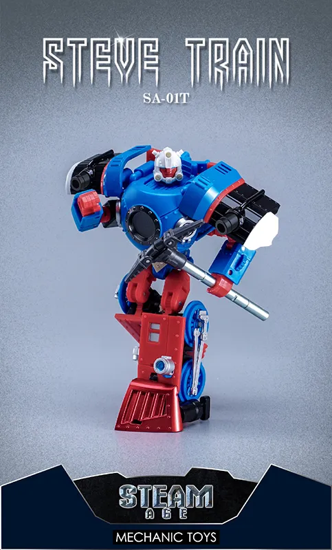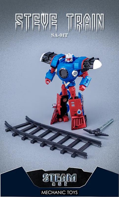 Mechanic Toys presents Steam Age SA-01T Steve Train, a steampunk style articulated figure that can transform from robot mode to train mode. SA-01T Steve Train features a piece of train tracks and a hammer.
