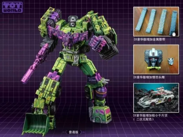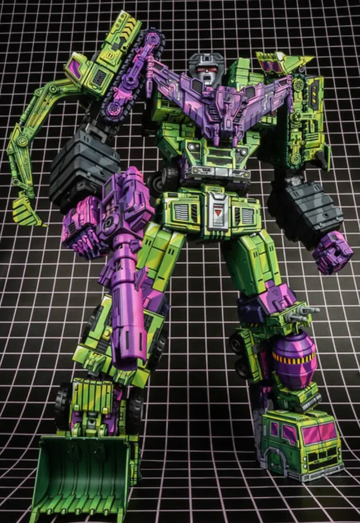 Toyworld's TW-C07A Constructor is a deluxe edition release of the mighty construction combiner that stands 20"/50CM tall when combined! This deluxe version includes polymetallic caterpillar, roar head, and a mini Whiskey Jack figure. All six figures transform from construction vehicle to robot and back, and combine together to form the mighy combiner Constructor!