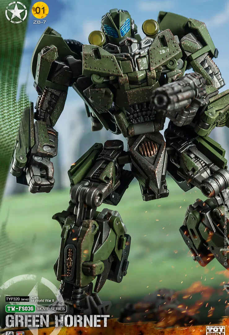 ToyWorld TW-FS03L Green Version transforms from a vintage car to robot and back. Features accessories include battle cannon, and a set of machine guns.