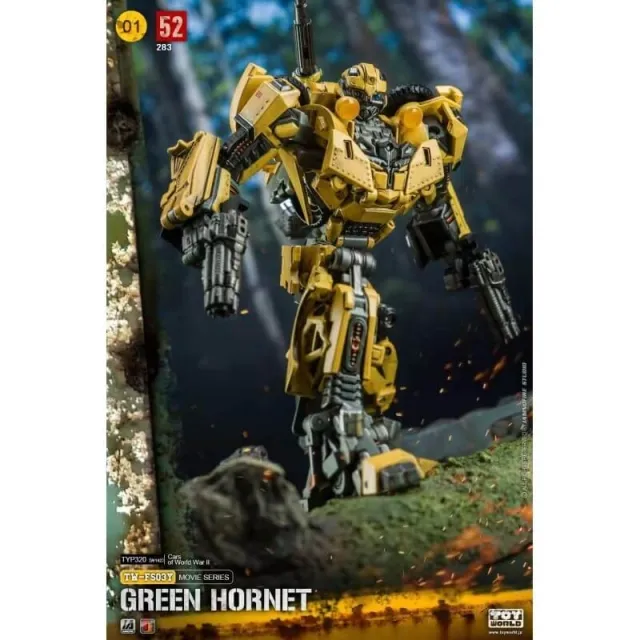 ToyWorld TW-FS03Y Yellow Version transforms from a vintage car to robot and back. Features accessories include battle cannon, and a set of machine guns.