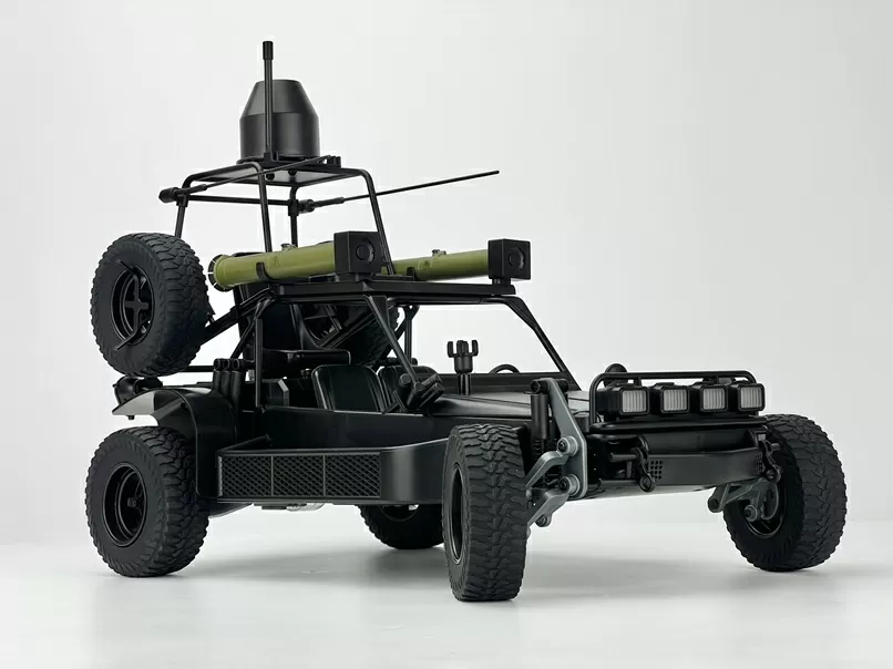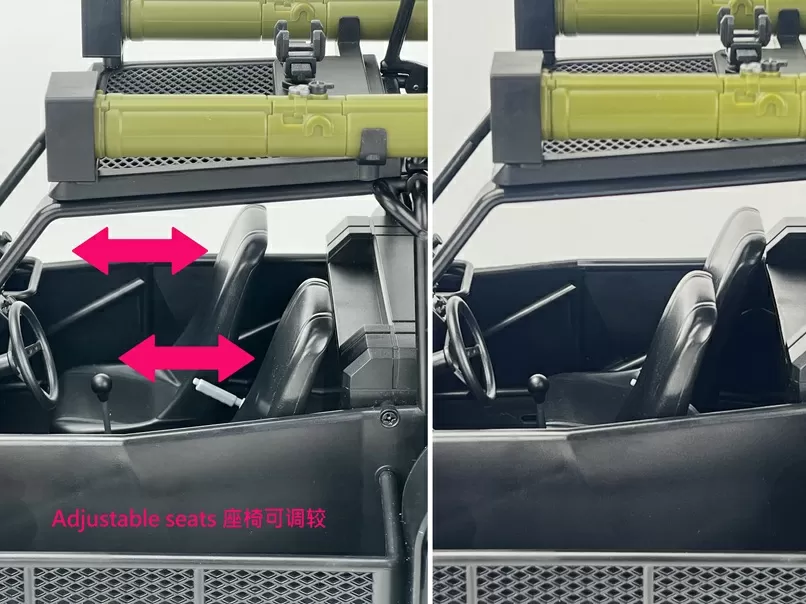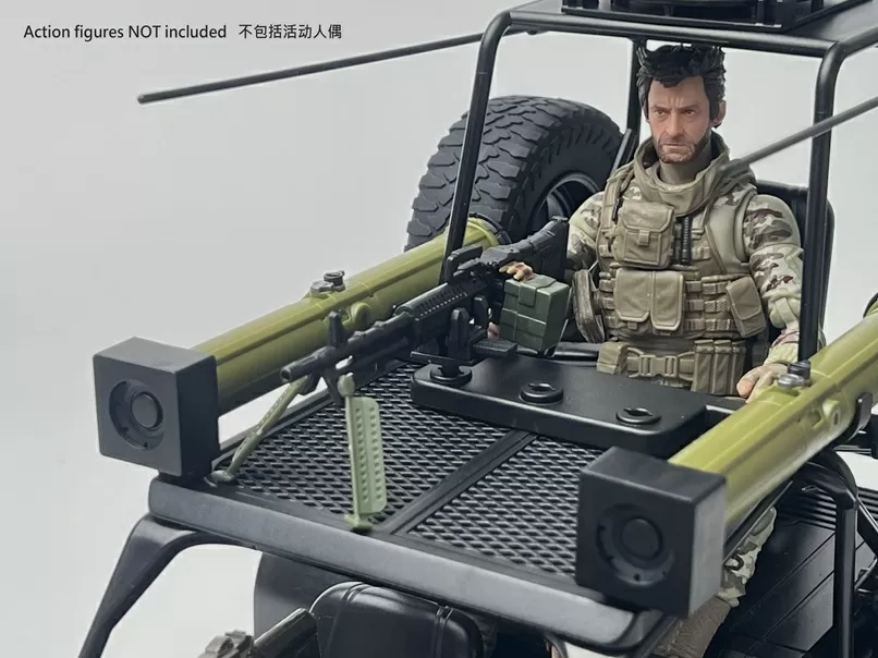 The VE-03A Black A.T.A.C. All Terrain Attack Carrier is 1/12 scale and is designed with great attention to detail, this vehicle includes a working steering wheel, optional 3rd seat and shelter, 2 rooftop missiles and adjustable seats. New accessories include a meshed rooftop, a set of sensor dome and antenna for the roll cage, a new bumper and so much more! Able to fit your favorite 6" or 1/12 scale figures, this is one vehicle you won't want to miss out on!