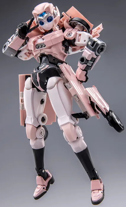 Wuling Hongguang Mini EV Nebula figure from SciFigure Industry is able to transform from a bipedal form to a vehicle form and comes with interchangeable parts. It stands 5.5 inches tall in robot form and 3.14 inches in car form.